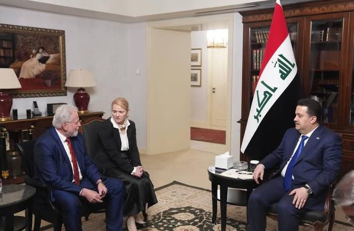 رئيس مجلس الوزراء السيد محمد شياع السوداني يلتقي في براغ ممثل شركة يونيس المتخصصة في مجال إنتاج النفط والغاز والصناعات البتروكيمياوية