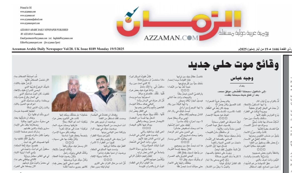 “إلى “شاهول” سبحتنا المُفَضَّض، موفق محمد،