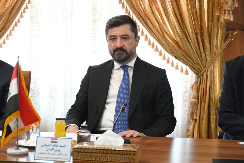 وصل وزير العدل العراقي الدكتور خالد شواني إلى العاصمة الإيرانية طهران في زيارة رسمية تهدف إلى تعزيز التعاون الثنائي في المجالات العدلية والقانونية، واستُهلت الزيارة بلقاء موسّع جمع معالي الوزير الدكتور شواني بنظيره الإيراني أمين حسين رحيمي ووفديهما، جرى خلاله بحث سبل تطوير العلاقات العدلية بين البلدين، وتفعيل الاتفاقيات الثنائية المبرمة في هذا الإطار.