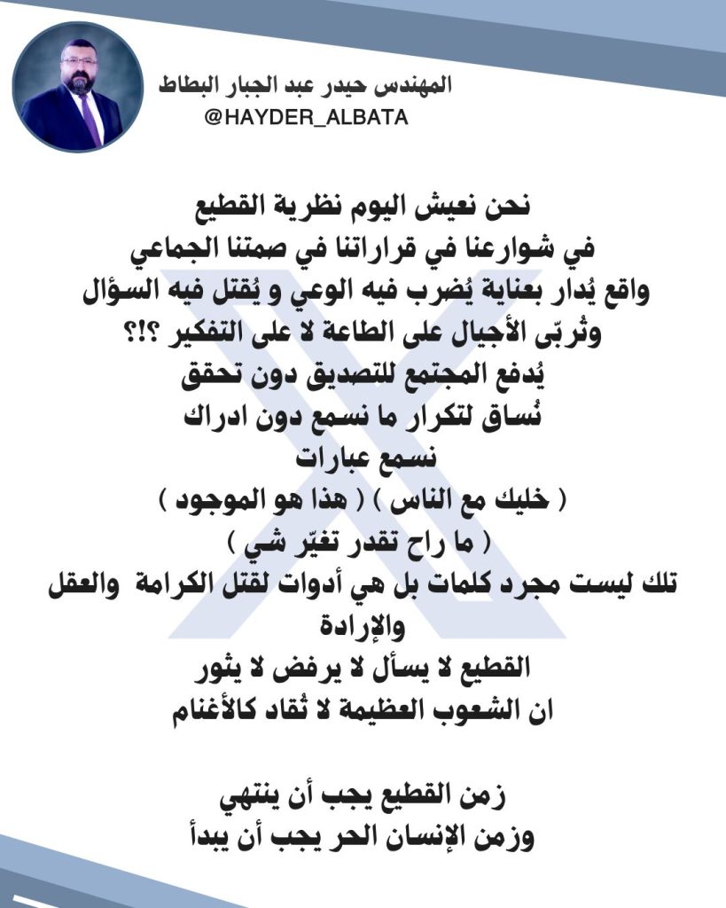 بقلم المهندس :- حيدر عبدالجبار البطاط ..