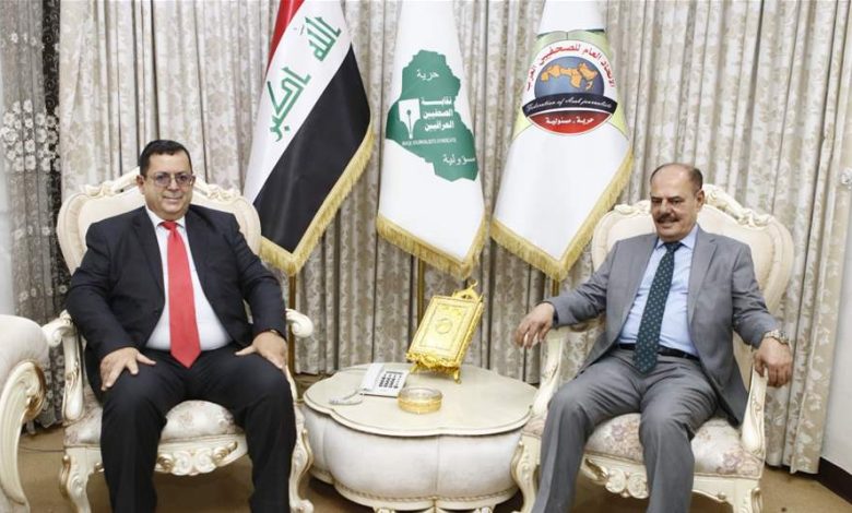 جاء ذلك خلال زيارة السفير التونسي الى نقابة الصحفيين العراقيين ولقائه نقيب الصحفيين العراقيين واعضاء مجلس النقابة .