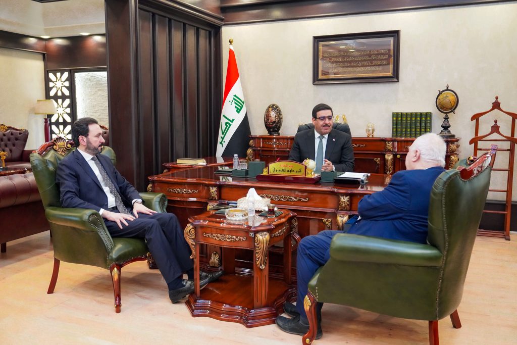 التقى السيد وزير التجارة أثير داود الغريري في مكتبه اليوم الاثنين السيد مستشار رئيس الوزراء للشؤون المالية الدكتور مظهر محمد صالح لبحث اليات التعاون لدعم القطاع التجاري وخطط وبرامج الوزارة لتحسين بيئة الاعمال والتي تتماشى مع السياسات المالية للحكومة .